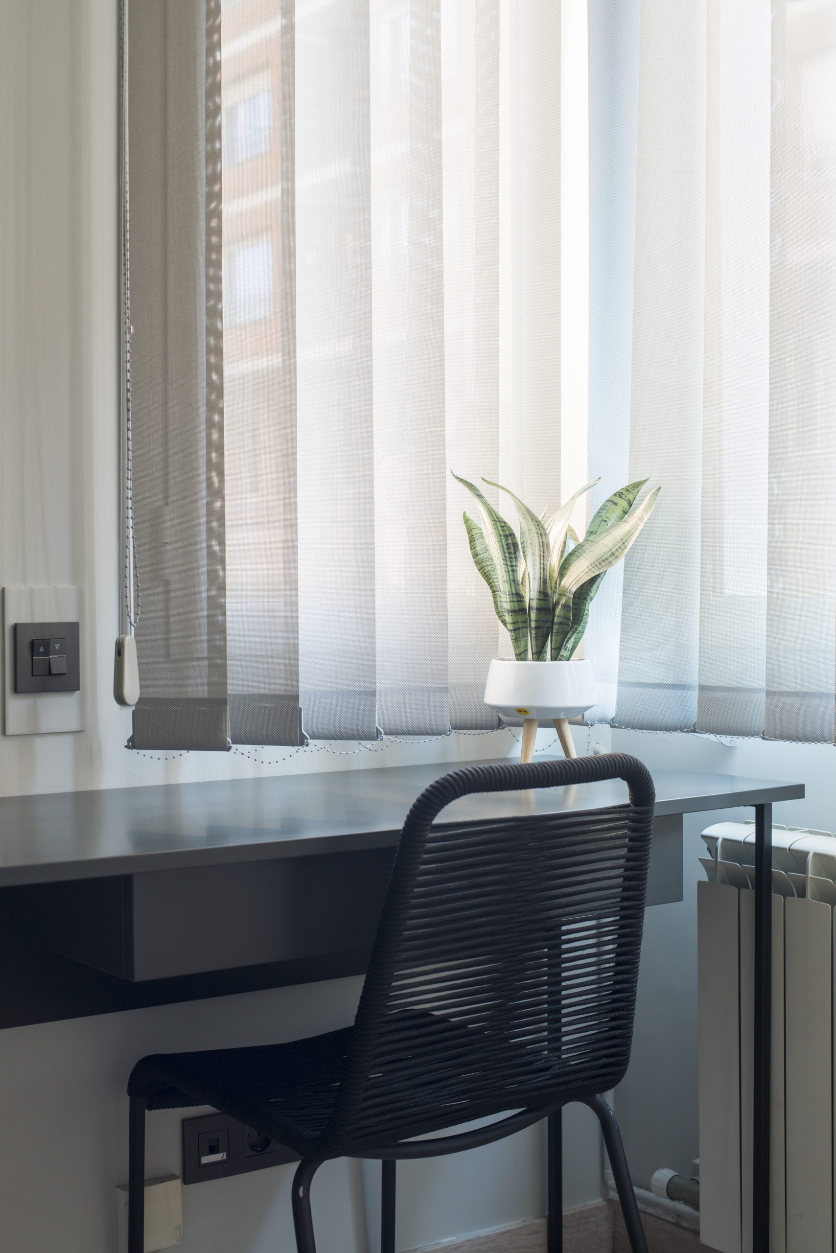 El apartamento dispone de radiadores para invierno y aire acondicionado y ventilador de techo para verano.